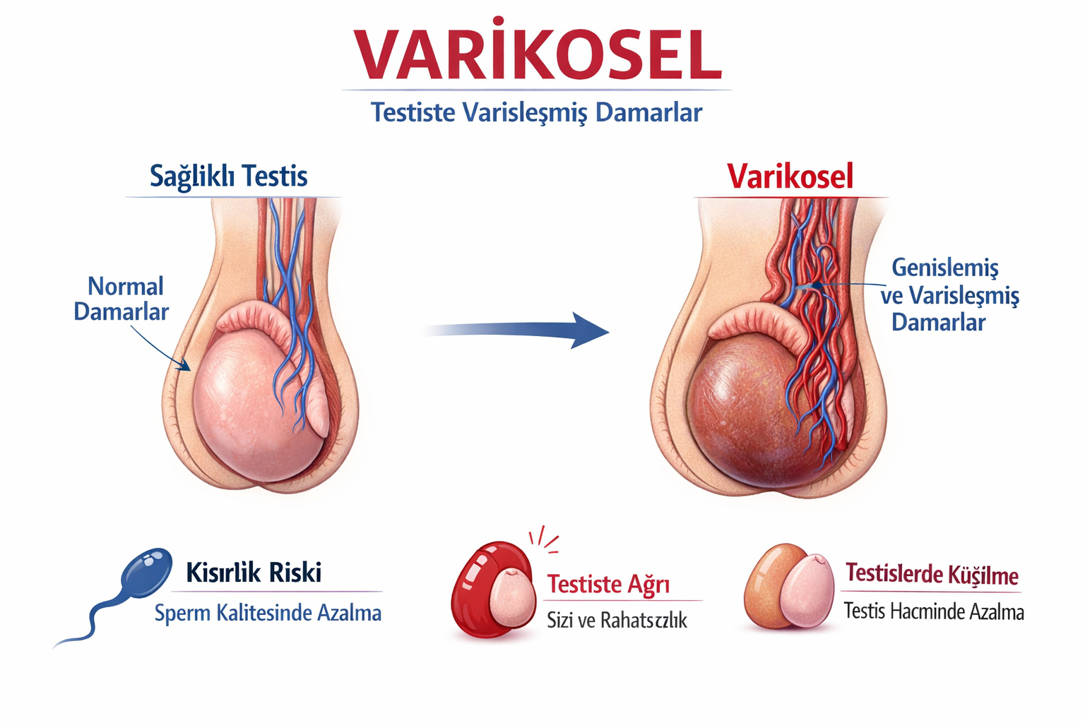 Varikosel, testislerdeki kanı boşaltan toplardamarların (venlerin) genişlemesi, yani bir nevi "testis varisi" durumudur. Genellikle sol…